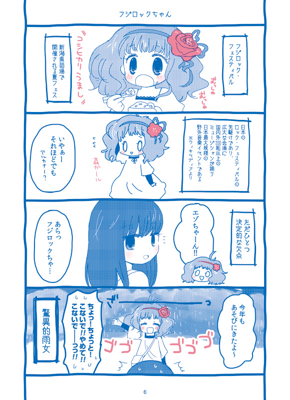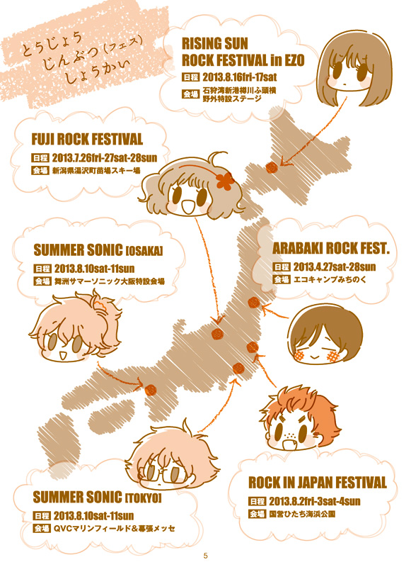 登場人物(フェス?)はフジロック、ライジングサン、ロックインジャパン、サマソニ(東京+大阪)、アラバキ。(+おっさん二人)