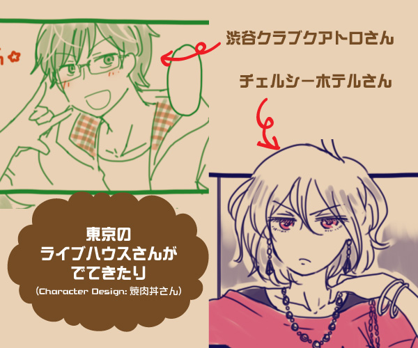 (渋谷クアトロさんとチェルホさんは、ゲストページも描いてくださった焼肉丼さんのキャラクターです)